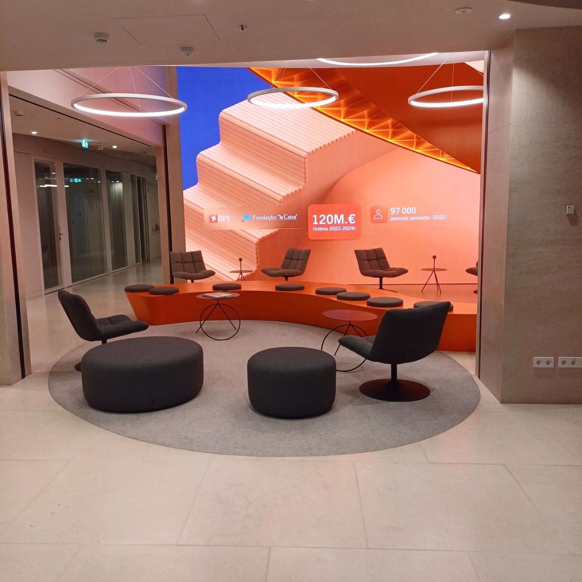 Na emblemática sede do BPI All in One, no Saldanha (Lisboa), a W4M colaborou na implementação de um projeto audiovisual de referência que combina tecnologia, design e inovação. O resultado é um espaço moderno e interativo, com soluções de Digital Signage, Gestão de Atendimento e Audiovisuais, concebido para elevar a experiência do cliente e reforçar a presença digital da marca.