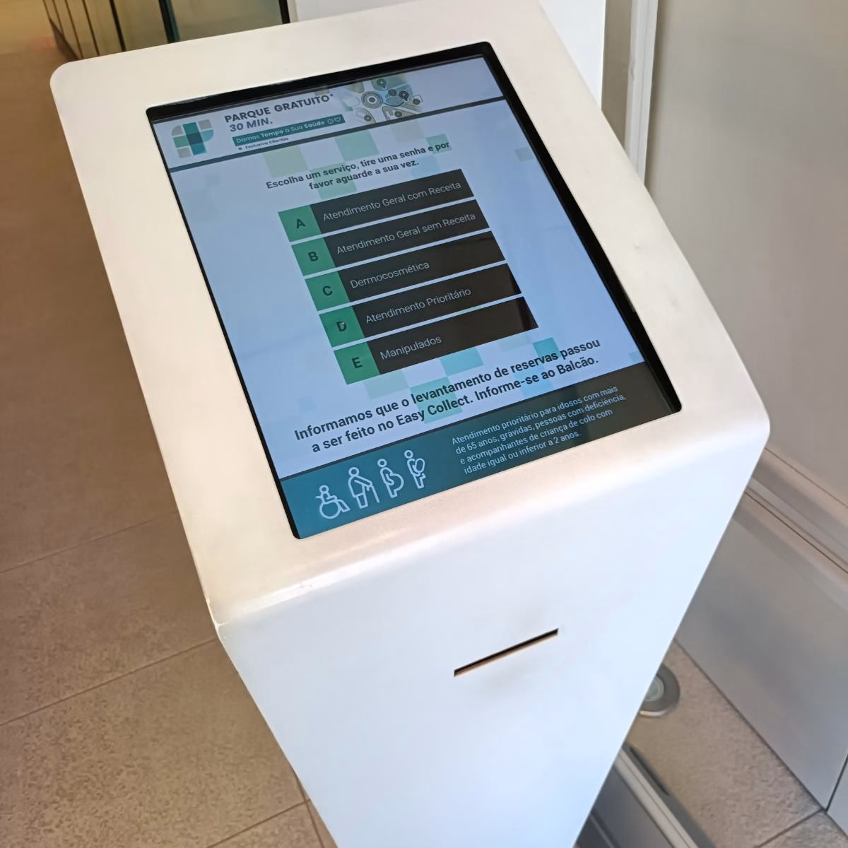 - Integração com Digital Signage, reforçando a comunicação visual e tornando o atendimento mais interativo e informativo.